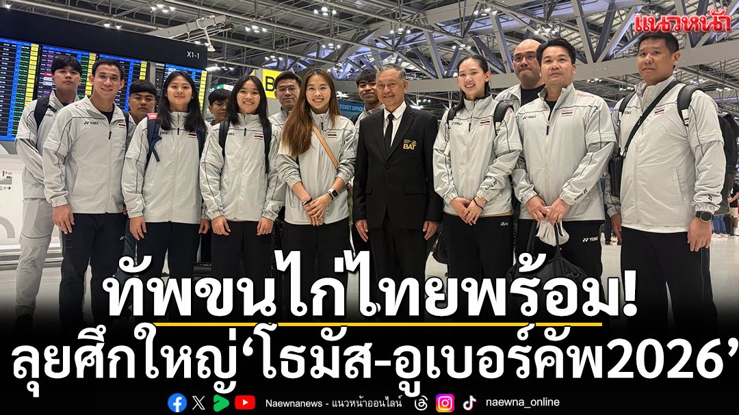 ทัพ 20 นักตบลูกขนไก่ไทย ทั้งทีมชายและทีมหญิง ออกเดินทางมุ่งหน้าสู่เมืองฮอร์เซนส์ ประเทศเดนมาร์ก เมื่อวันจันทร์ที่ผ่านมา เพื่อทำศึกแบดมินตันรายการใหญ่แห่งปี "BWF Thomas & Uber Cup Finals 2026" ระหว่างวันที่ 24 เม.ย. - 3 พ.ค. 69 นี้
