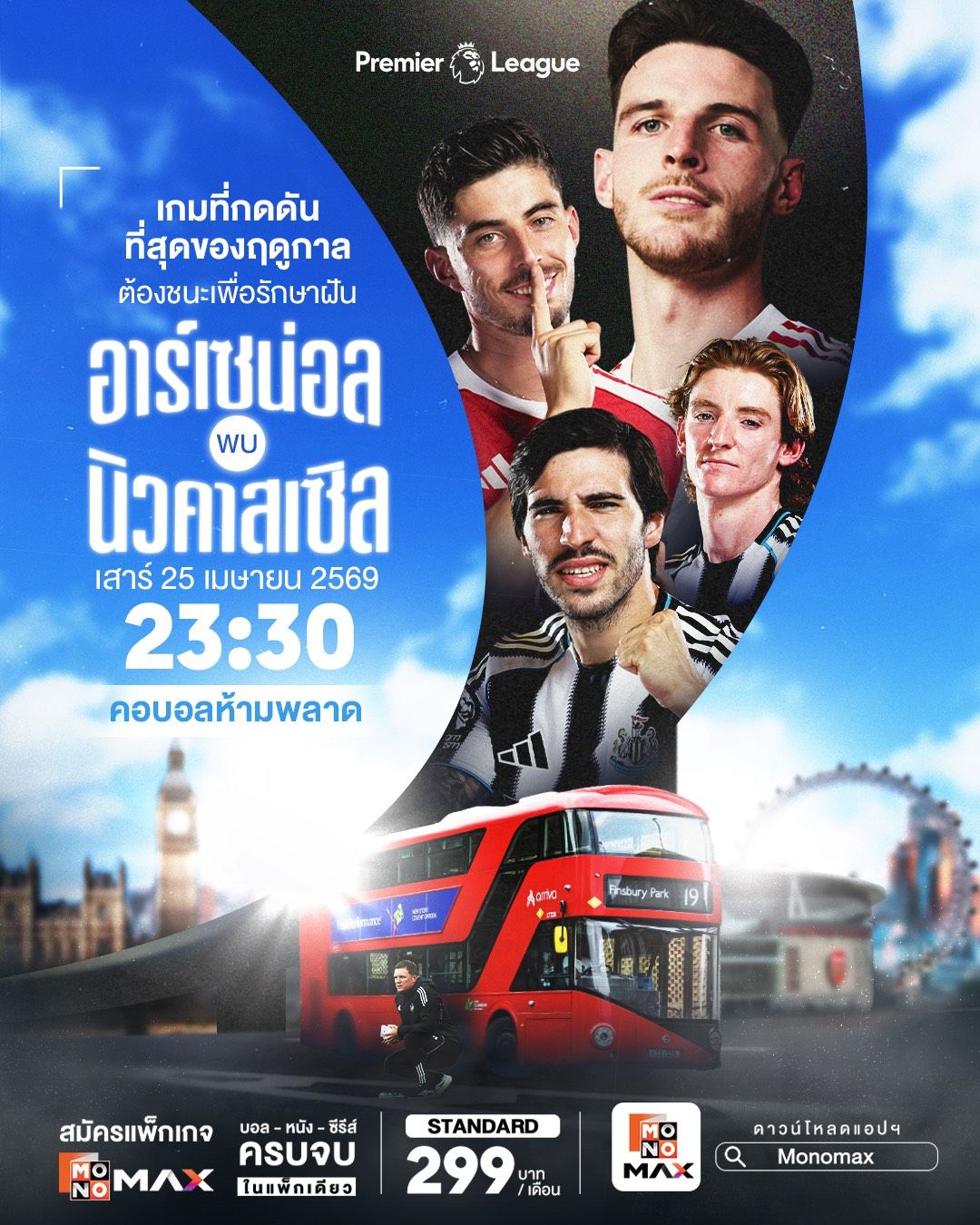ขณะที่ศึกฟุตบอลพรีเมียร์ลีก อังกฤษ เดินทางสู่สัปดาห์ที่ 34 ซึ่งเป็นช่วงโค้งสำคัญของฤดูกาล โดยมีบิ๊กแมตช์ให้ติดตามตลอดสุดสัปดาห์ ไม่ว่าจะเป็นการชี้ชะตาหัวตาราง รวมถึงอีกหลายคู่ที่มีผลต่อการหนีตกชั้นลุ้นพื้นที่ยุโรปใน วันเสาร์ที่ 25 เมษายน 2569 และ วันอังคารที่ 28 เมษายน 2569 ถ่ายทอดสดครบทุกคู่ทาง Monomax และบางคู่รับชมได้ทาง ช่อง MONO29