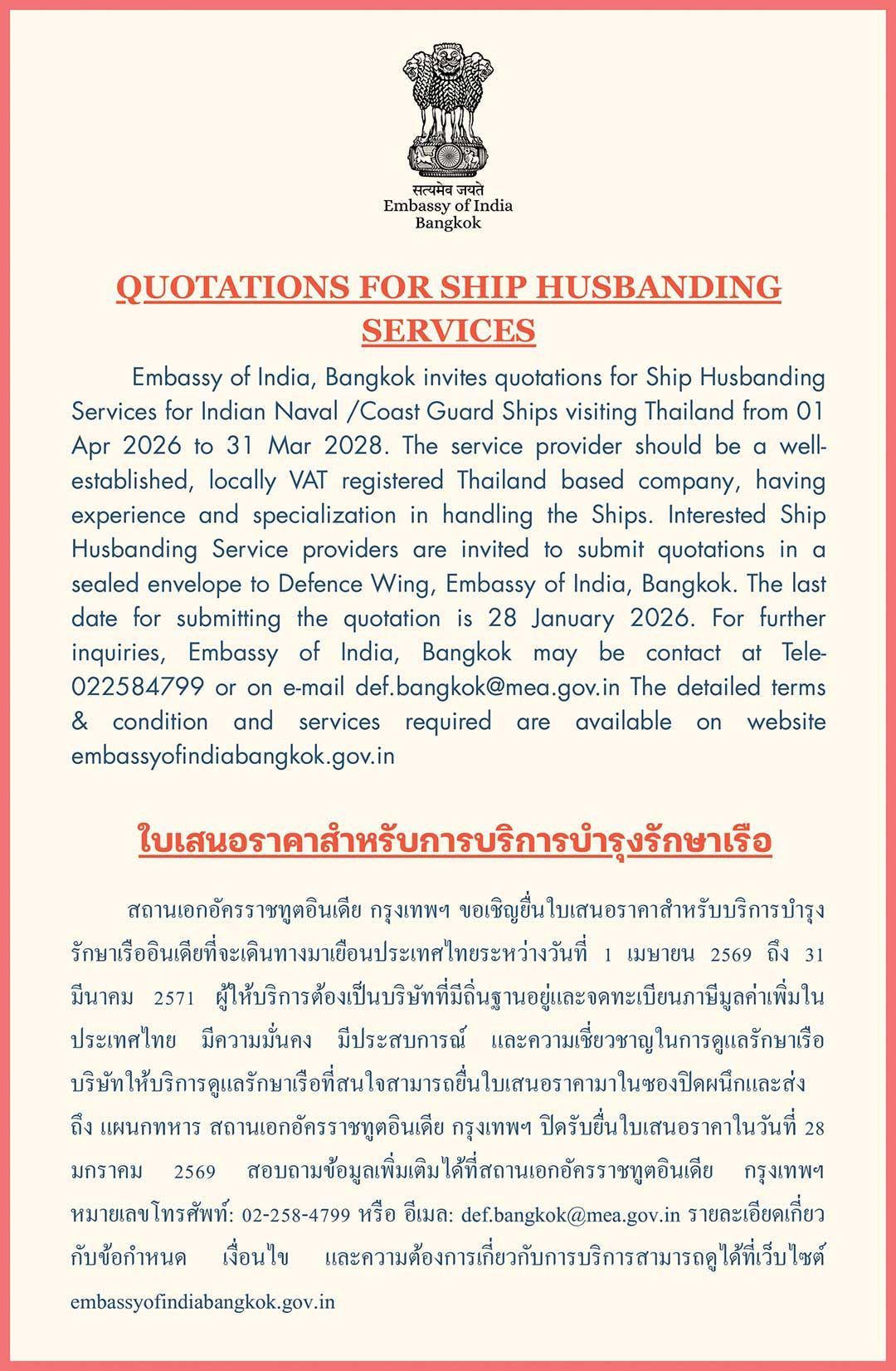 QUOTATIONS FOR SHIP HUSBANDING SERVICES